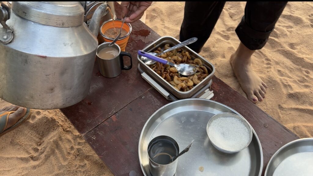 Indiahikes, represented by our lead guide Nalin, did an outstanding job of organizing and executing the trek. With a summer-camp-like atmosphere, we quickly developed a strong sense of team that, over the course of the remaining days, evolved into wonderful new relationships. Each trekking day began with the formation of a circle and some light stretching, which was repeated at the close of each day’s hike. In the evenings, we gathered in communal areas of the camp to play both Indian games (which required us to learn some Hindi) and the more widely known game of Mafia. Making a mistake in one of these games required the offender to sing a song to stay in the game or be eliminated. Several of the ladies on the trek were wonderful singers who treated us to songs from the famed Carnatic tradition as well as Bollywood hits, often prompting enthusiastic group sing-alongs. Mylo and I went beyond our usual comfort zones and each delivered a song when required. After late-evening dinners and tea, a number of trekkers assembled under the dark sky for stargazing before heading off to bed.