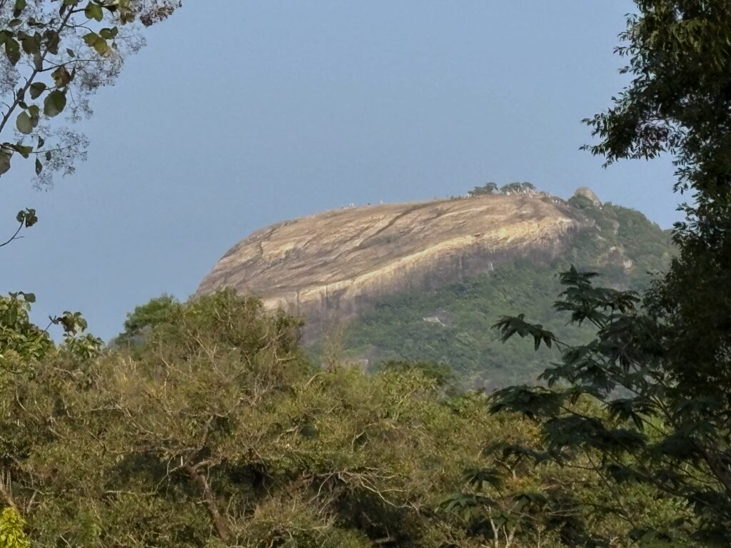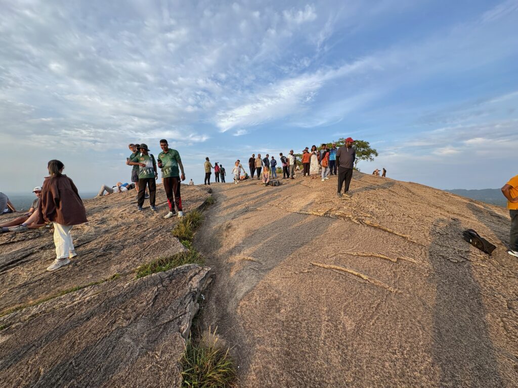 With time to spare, we set out for a sunset hike up nearby Pidurangala Rock, which has grown in popularity as an alternative viewpoint to the more famous Sigiriya Lion Rock. Feeling like seasoned step-masters after our adventures in India, we climbed the 200 metres to the summit quickly — only to encounter a human traffic jam near the top, where hikers must scramble over boulders to reach the peak. With people ascending and descending simultaneously and no system to manage the flow, progress slowed to a frustrating crawl, a reminder that even once-hidden beauty now draws eager crowds.