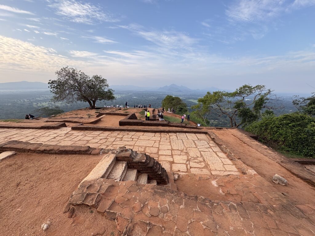 When we finally emerged onto the sloping, barren summit, the reward was worth the wait: sweeping 360-degree views of jungle, lakes, scattered homes across the plains below, and the magnificent Sigiriya Lion Rock rising dramatically in the distance, its monolithic form commanding the horizon like a sentinel from antiquity. The descent through the bottleneck proved even more exasperating, as descending crowds collided with latecomers still climbing upward.