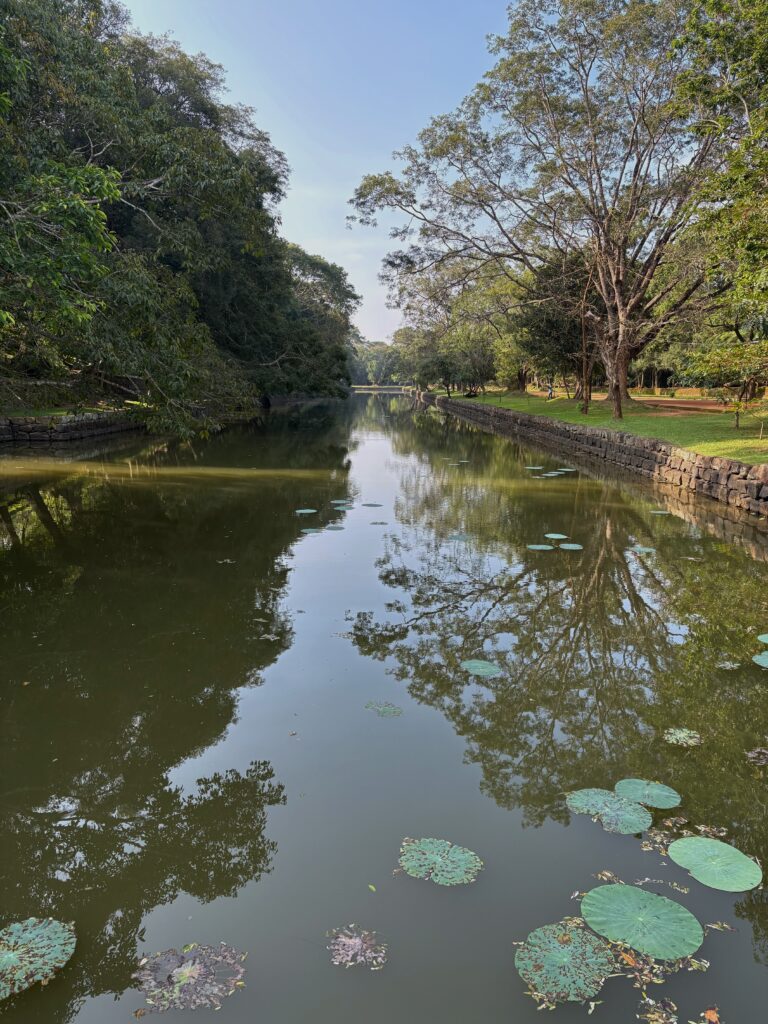 We rose early the next morning to walk the kilometre and a half from our cabana to the Sigiriya Lion Rock entrance. The cool morning air made the approach through rural countryside especially pleasant. Passing through the archaeological park’s jungle pathways, we soon reached manicured gardens — among the oldest landscaped gardens in the world — and crossed the two moats protecting the base of the rock.