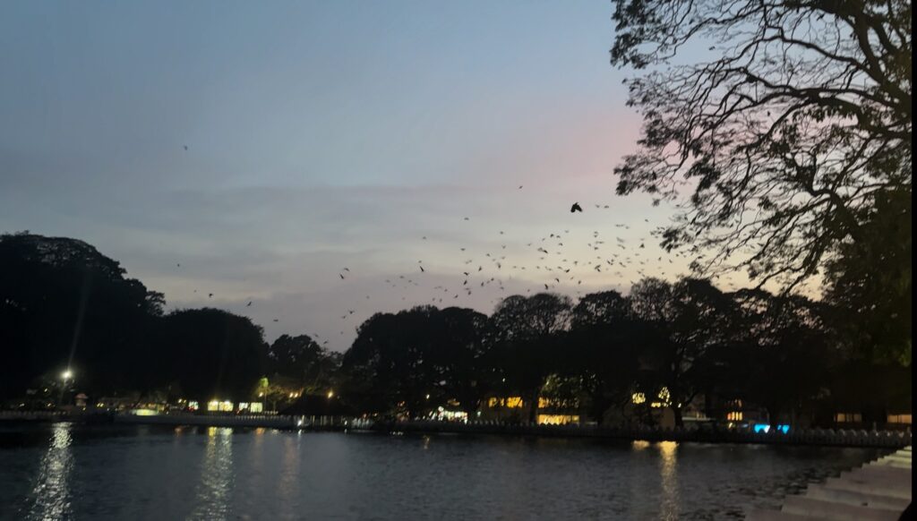 Eventually, we pulled ourselves away from this pleasant reverie to explore Kandy before daylight faded. A short downhill tuk-tuk ride delivered us to the heart of the city near the famed Temple of the Tooth and the tranquil Kandy Lake. As dusk settled, we strolled along the lakeside path while birds noisily sought their roosts and large fruit bats launched into the sky to begin their night’s feeding, their wings slicing silently through the dimming light.