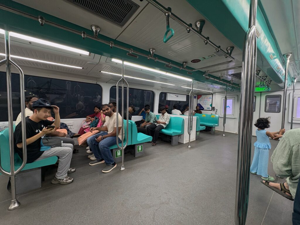 To finish our day in Kochi, we headed back to the waterfront to ride the new, quiet electric ferries that comprise the Kochi Water Metro. These fast, sleek vessels are used by locals and tourists alike. We were pleased to spot a species of dolphin plying the waters and enjoyed the views as the sun faded and the temperature dipped. In the evening, we went on a “wild goose chase” to find a government-sanctioned store licensed to sell beer. After several kilometres and some dead ends, we hired an auto-rickshaw driver to take us, finally quenching our parched throats.