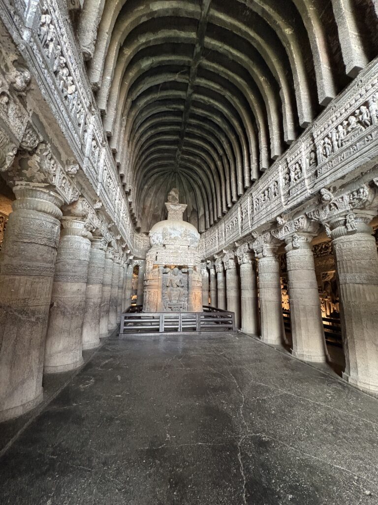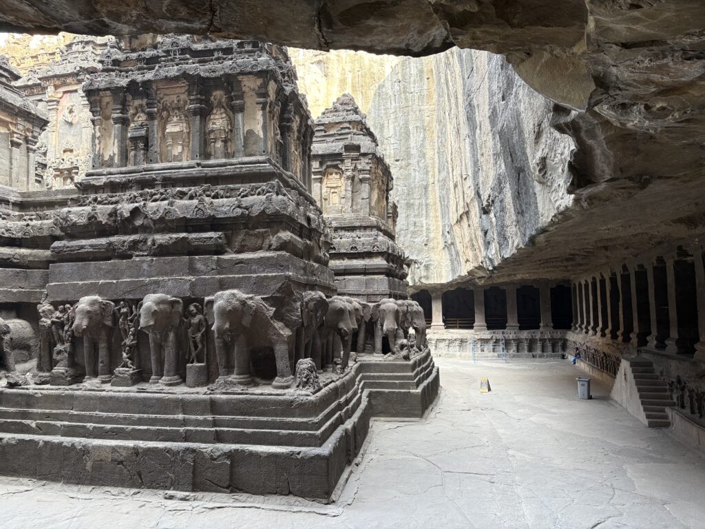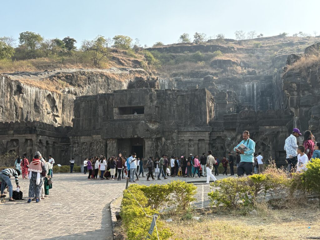 Our final full day was devoted to the heavy hitters: Ellora Caves and Daulatabad Fort, both within 35 kilometers of the city. Ellora’s thirty-four caves represent Buddhism, Hinduism, and Jainism, but the undeniable showstopper is the Kailasa Temple—the world’s largest single monolithic rock excavation. Carved entirely from one block of basalt and dedicated to Lord Shiva, its scale and precision are so extreme that some have jokingly credited ancient aliens with its construction.