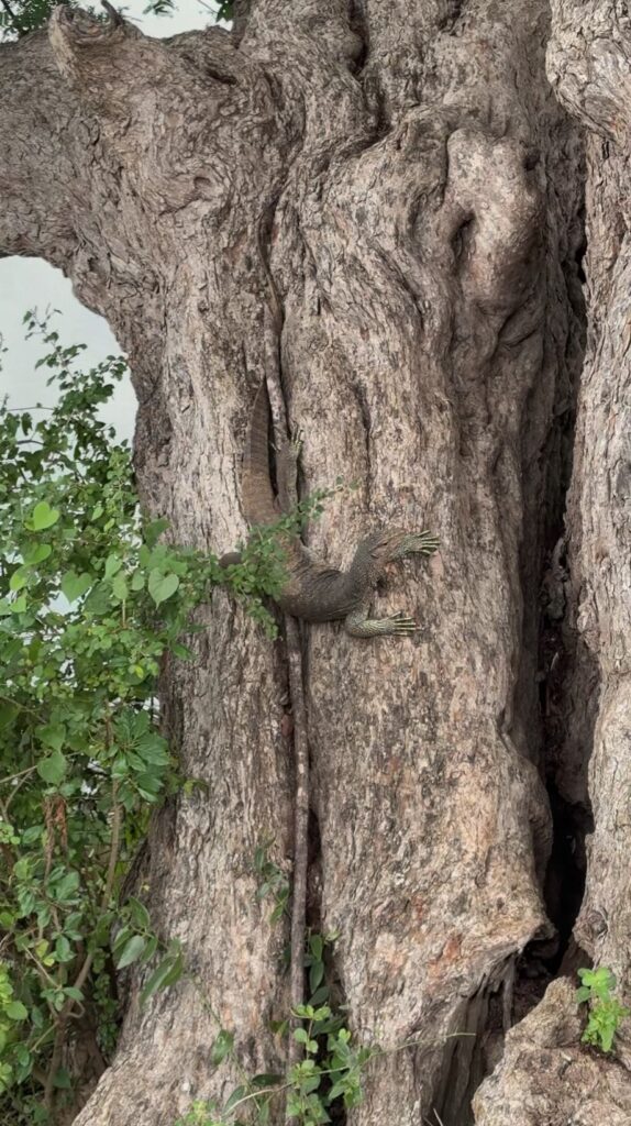 Monitor lizard climbing a tree