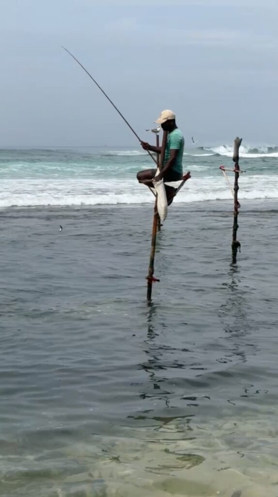 Stilt fisherman, known locally as Ritipanna, that allow fishing in shallow water without casting a shadow