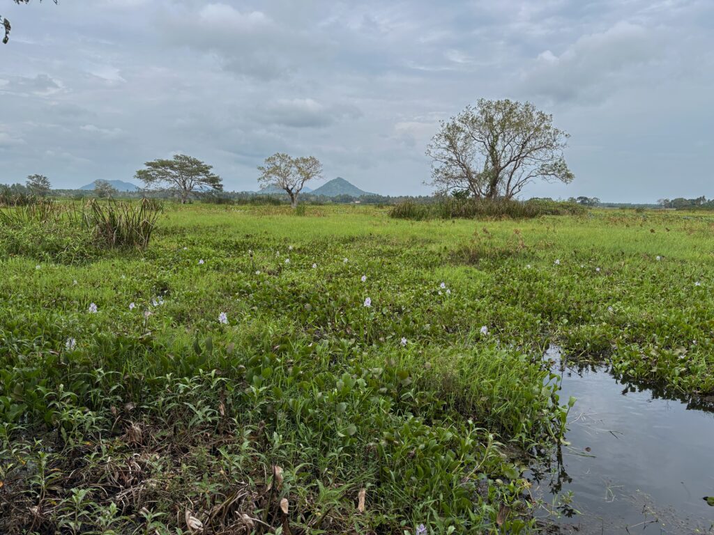 By early afternoon, we arrived at our accommodations for the next two nights, the New Cormorant Lake Resort, where we would base ourselves for a full-day safari in Yala National Park the following day. Our host, Gayan, not only booked our safari at a very reasonable rate, but also included several complimentary excursions and restaurant transfers on our first evening, which was an unexpected bonus. The first excursion was a tuk-tuk–based sunset trip around Cormorant Lake and another nearby shallow lake to spot endemic and overwintering birds in the region. During frequent stops, we spotted numerous species, including rare songbirds, large fruit bats, Malabar hornbills, kingfishers, various waterbirds, and a few freshwater crocodiles.
