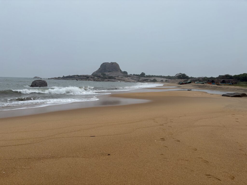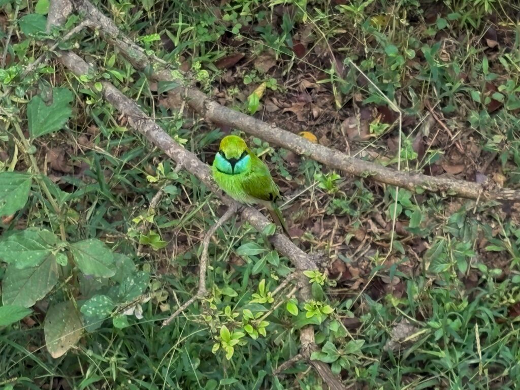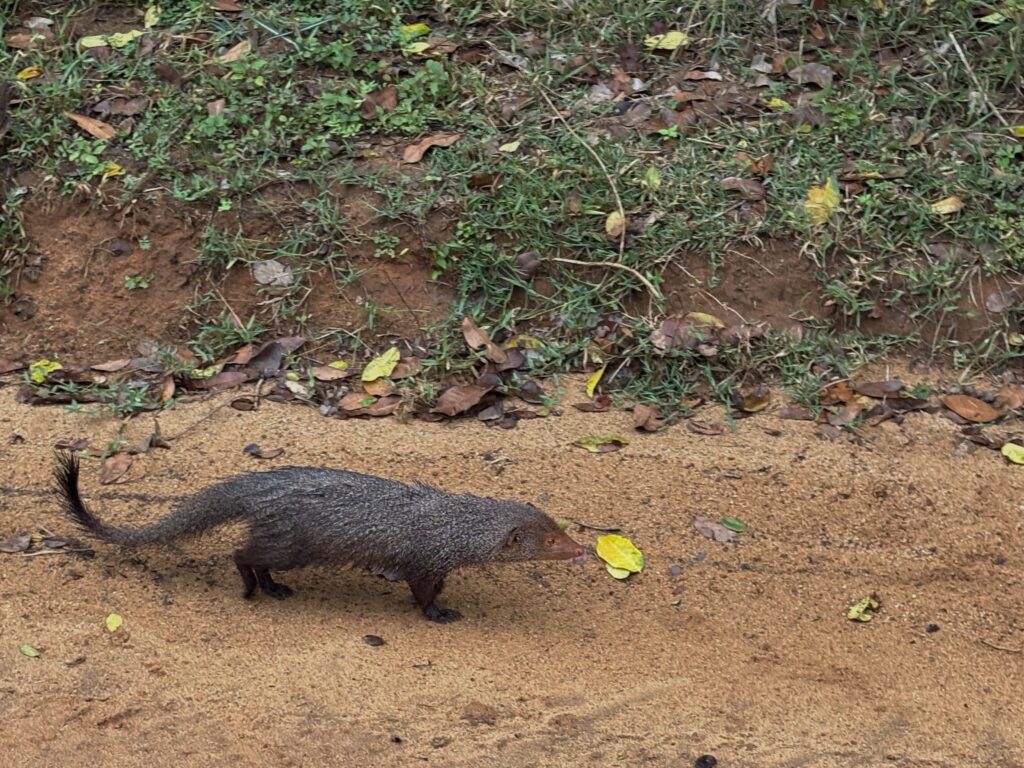 We later returned to the beachfront rest area for a two-hour lunch break, which gave us time to wander north and south along the shore, stretching the boundaries of the warning signs just a little. The thrill of strolling along a tropical, surf-wracked beach — knowing that an elephant or leopard could emerge at any moment — was pure adrenaline. In the afternoon, we explored a new section of the park, adding more species to our growing list while admiring rock outcrops, open plains, and lotus-dotted waterbodies. Although we had no further intimate leopard encounters, the day remained exceptional, highlighted by numerous elephant interactions, including small herds with calves playfully bathing in waterholes.