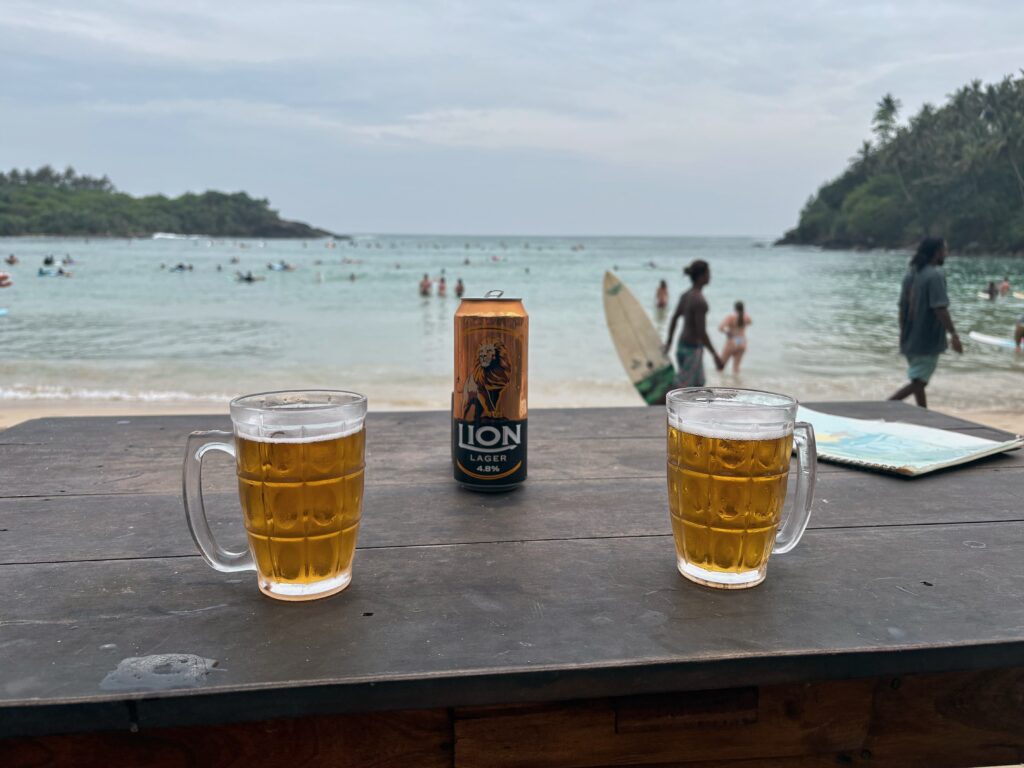 The next morning, we began exploring Sri Lanka’s south coast beaches. Our first stop was picturesque, horseshoe-shaped Hiriketiya Beach, popular with beginner and intermediate surfers. Mylo eagerly rented a surfboard at rates that seemed impossibly cheap by Canadian standards and was soon “crushing” the waves — at least by his own assessment. I prefer surf kayaking or paddleboarding with kayak paddles, but since those weren’t available, I joined the throngs for swimming and some body surfing. When we’d had enough, we settled onto the narrow, lively beach for cold beers and music.