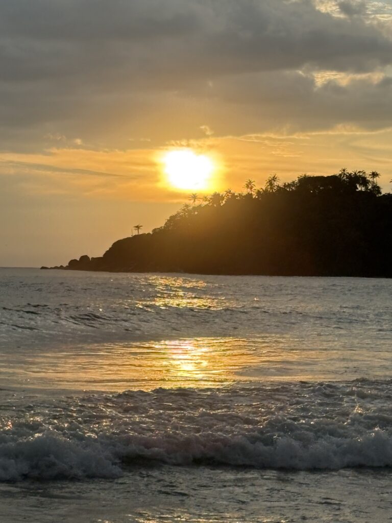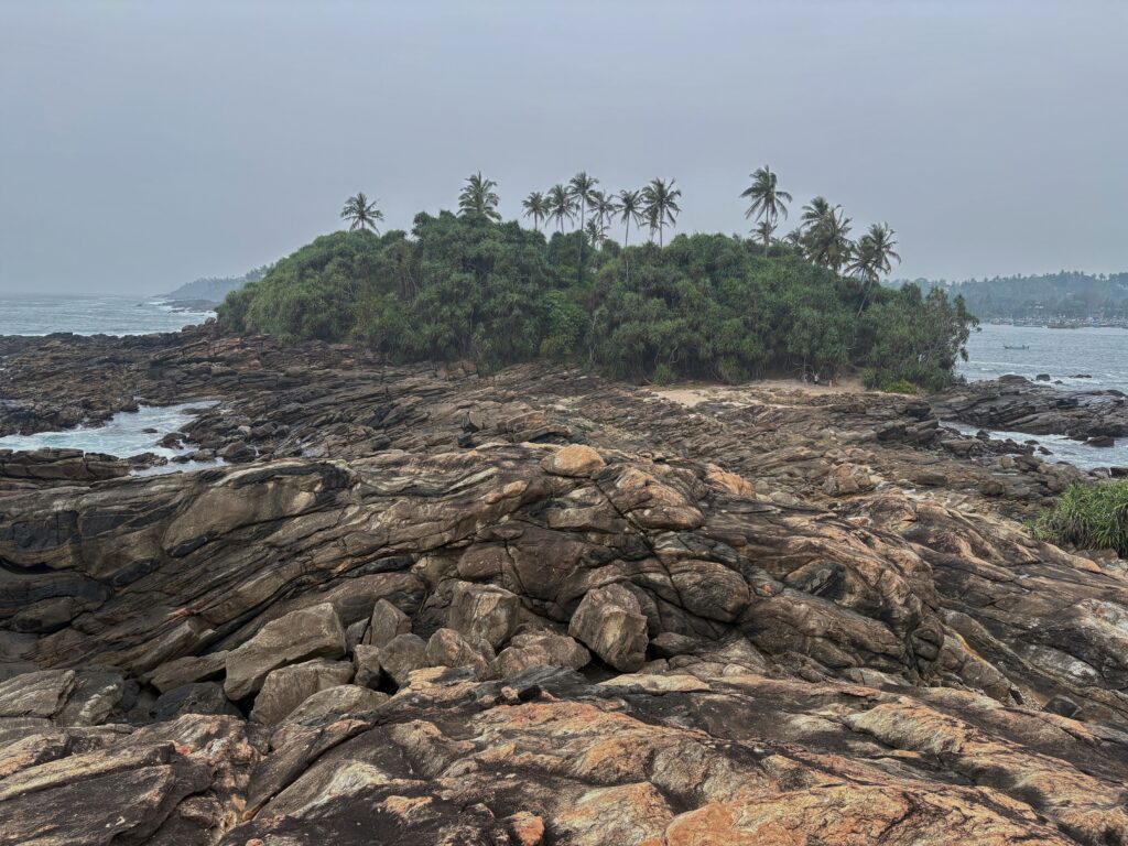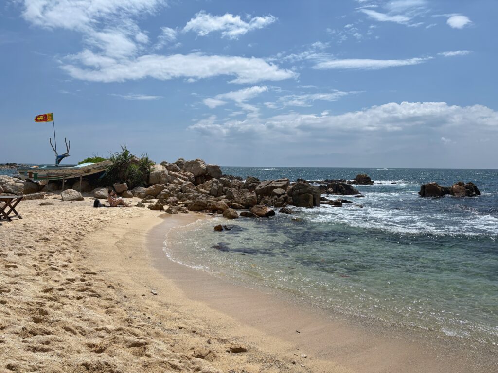 On our final full day in Mirissa, we visited Secret Beach, divided into two small coves by a rocky point. We relaxed on lounge chairs just steps from the water, alternating between cold drinks and snorkelling in the calm lagoon. That evening, we opted for Thai cuisine and were delighted by a prawn Penang curry and pad Thai that rivaled anything we’d tasted in Southeast Asia. My spice tolerance, well-honed over five weeks, was now strong enough to warrant extra chilies from the side bowl.