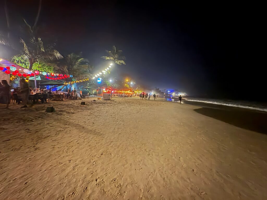 When the sun goes down the lights come up at Mirissa beach