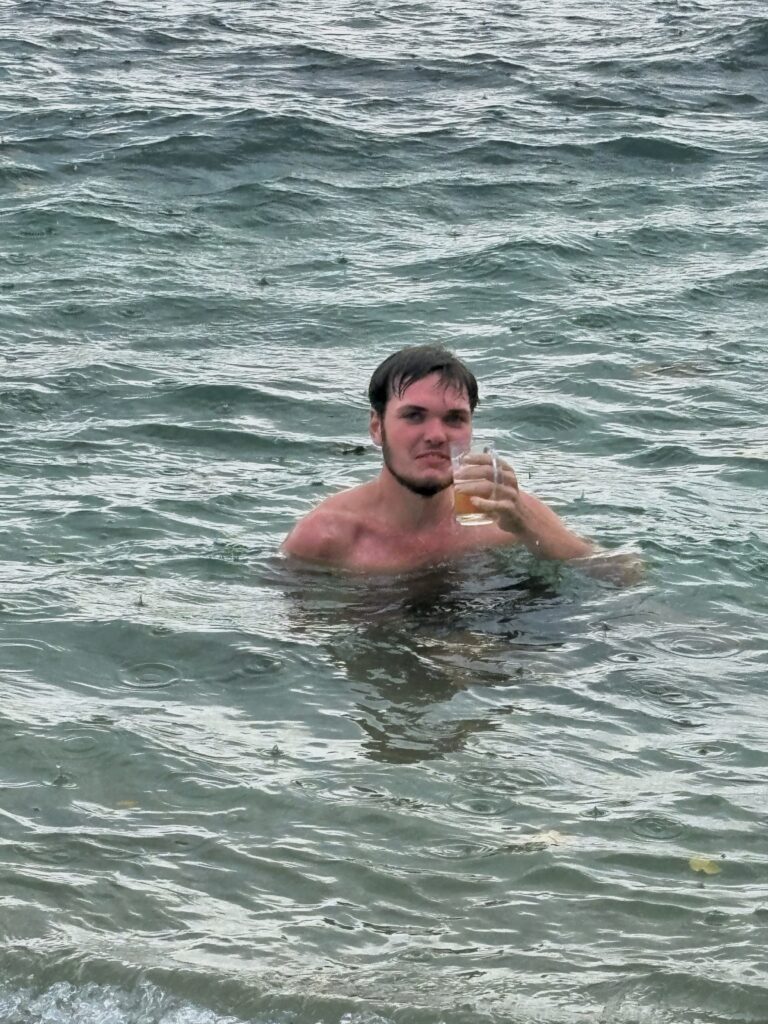 That evening, after sharing a small bottle of Arawak, a locally produced cane spirit, to break from the usual beers, we joined the nightly beach party. Fireworks, Klieg lights, and lasers signaled the chosen venue, drawing everyone toward music and dancing under the stars.